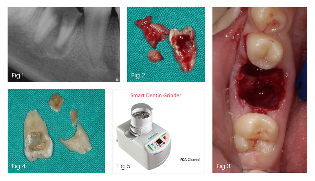 Your dental practitioner transforms your extracted tooth into Autogenous Dentin Graft - a natural, effective way to speed up healing and restore your jawbone.