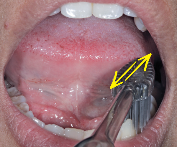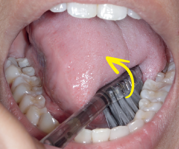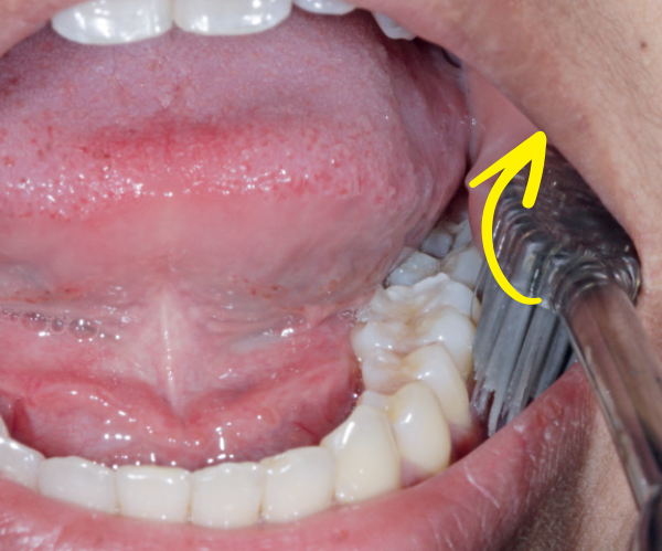 - ब्रशमा केराउको गेडा जति फ्लोराइडयुक्त मञ्जन हाली, मञ्जन बिना सफा गरिएको दाँत, गिजा र जिब्रोका सतहहरुमा ब्रशलाई बिस्तारै घुमाउँदै मालिस गर्दै पुनः सफा गर्ने ।