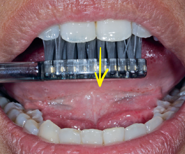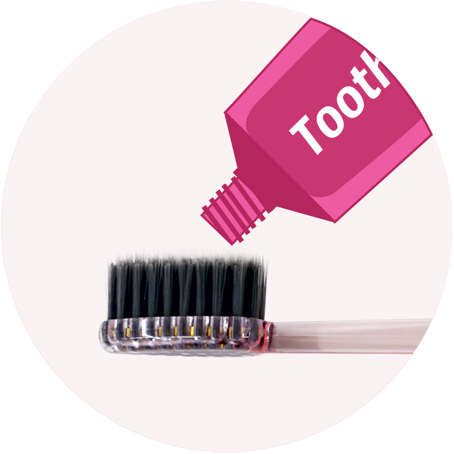 - ब्रशमा केराउको गेडा जति फ्लोराइडयुक्त मञ्जन हाली, मञ्जन बिना सफा गरिएको दाँत, गिजा र जिब्रोका सतहहरुमा ब्रशलाई बिस्तारै घुमाउँदै मालिस गर्दै पुनः सफा गर्ने ।